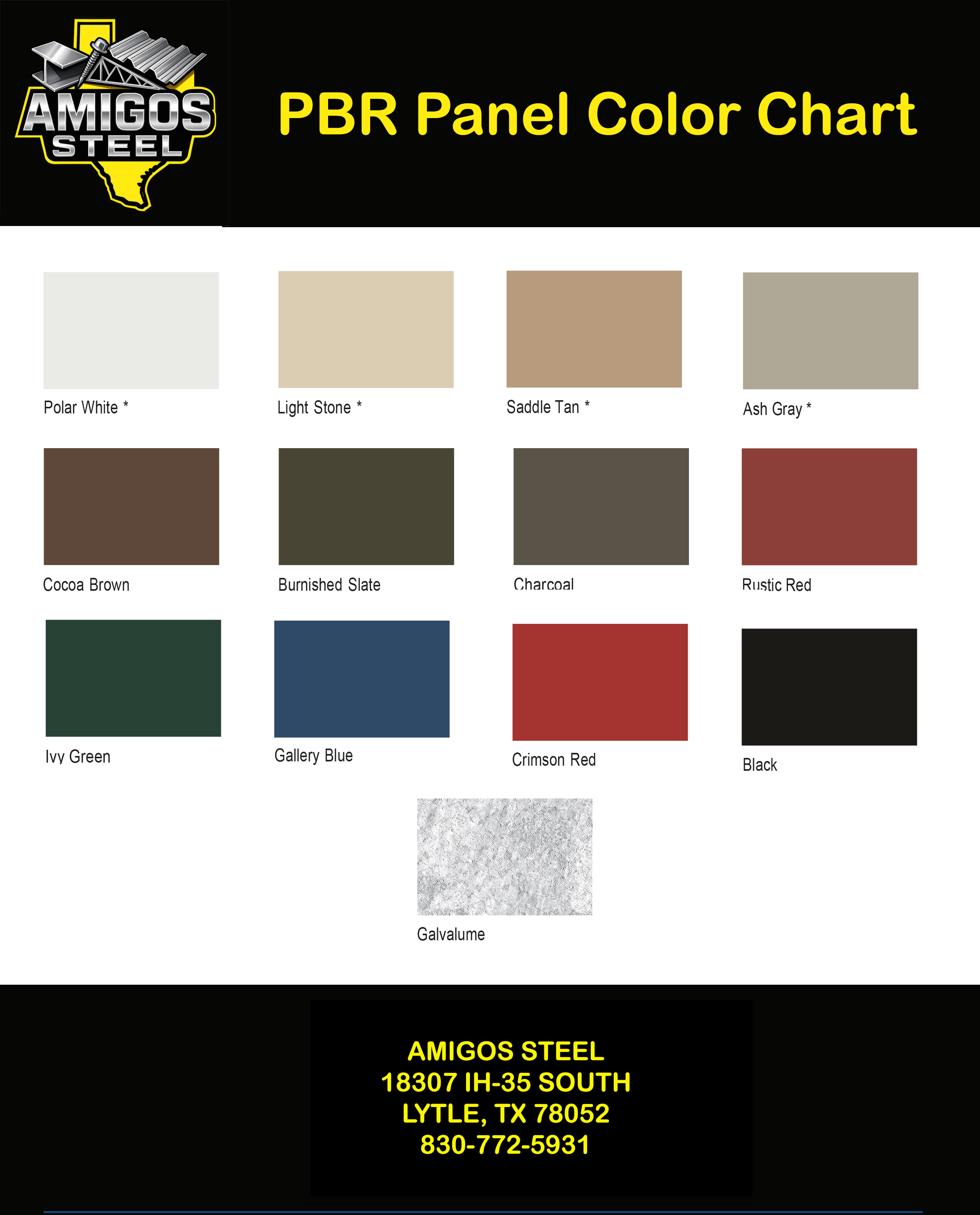 Choose from a wide variety of vibrant colors—including Polar White, Charcoal, Gallery Blue, and more—to match your design needs. With custom lengths available, you’ll get the perfect fit every time, reducing waste and saving valuable time during installation. Whether you’re roofing a warehouse, barn, or backyard shed, Amigos Steel has you covered. Contact us today to check current pricing, color availability, and turnaround times.